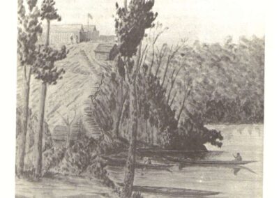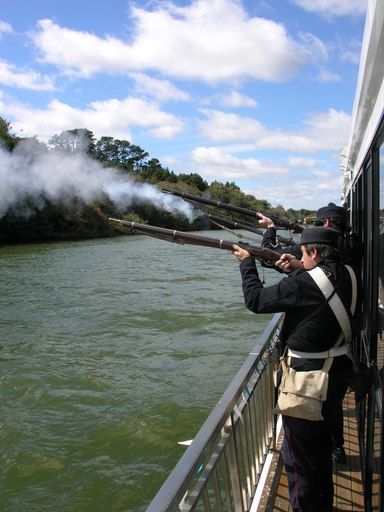 Musket salute in memory of the fallen as we pass the site of Cameron Stockade
